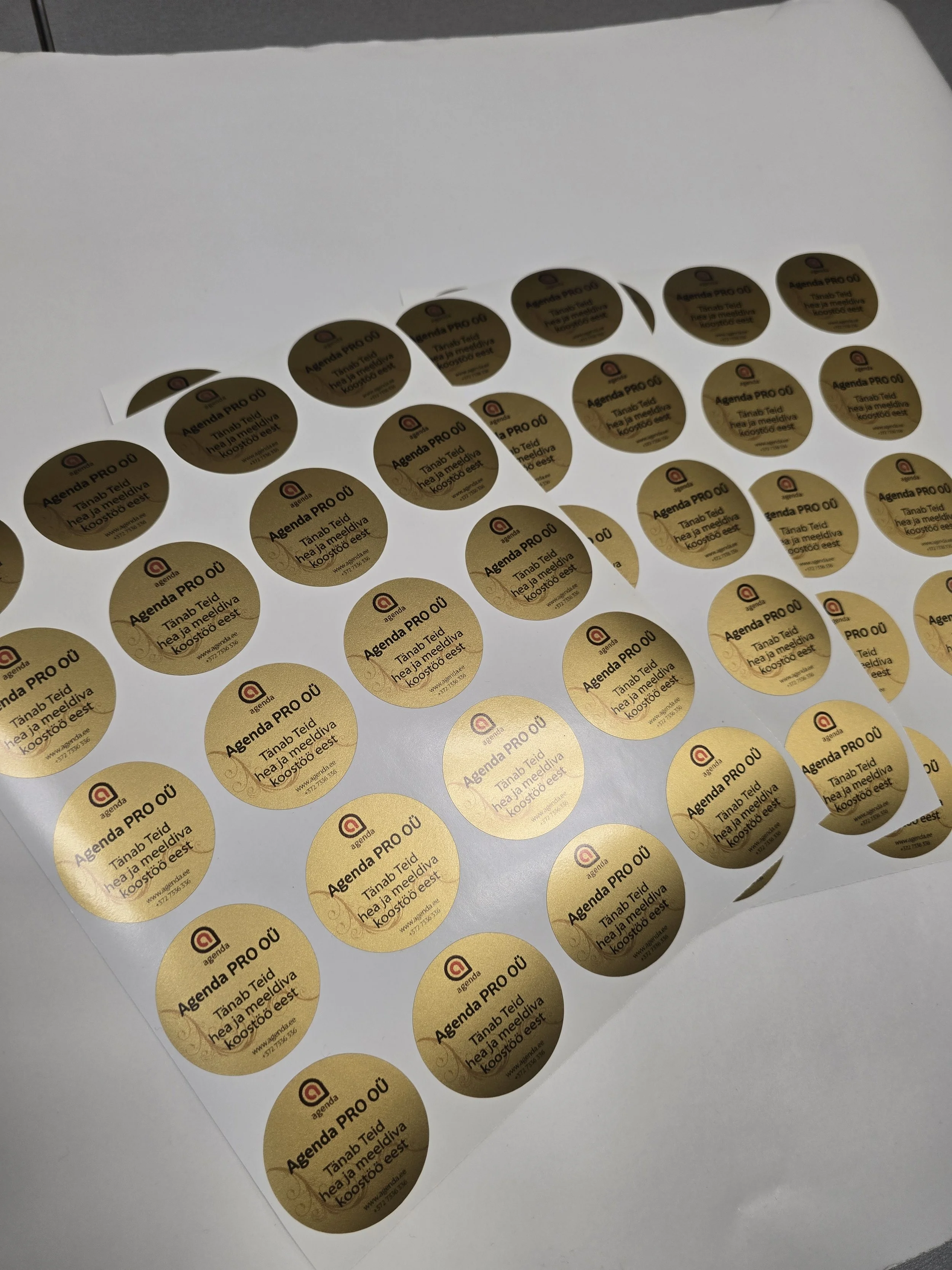 Kleebiseid, mis ei ole mõeldud pikaajaliseks kasutuseks välitingimustes saame teha A3 formaadis lehtedena 1-3 tööpäevaga. Valikus on matt ja läikiv pealispind.